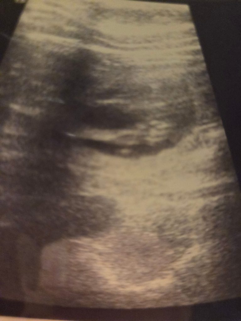 Unser Haustierarzt hat heute Abend eine Ultraschalluntersuchung gemacht und mehrere Welpen in ihrem Bauch gesehen.